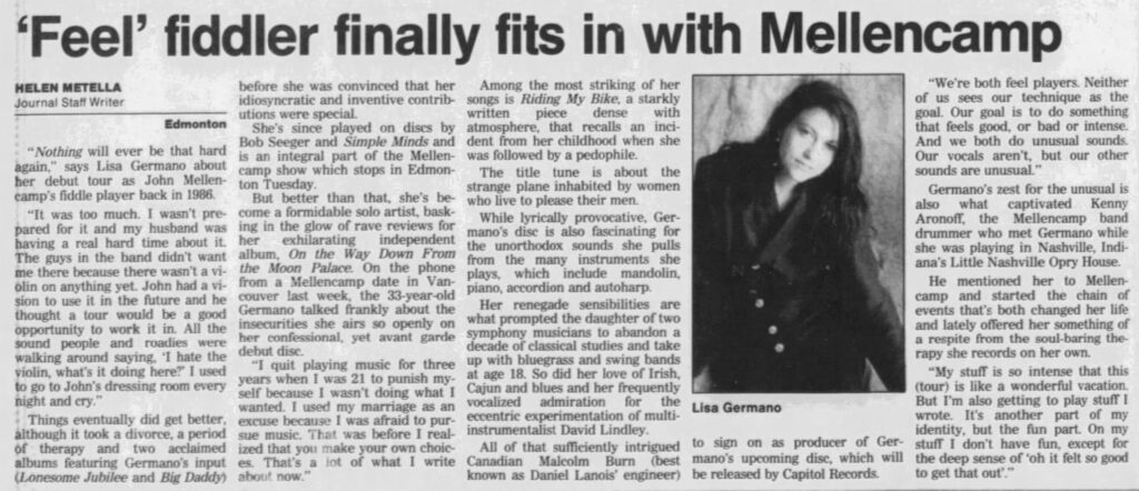 “Nothing will ever be that hard again,” says Lisa Germano about her debut tour as John Mellencamp’s fiddle player back in 1986.